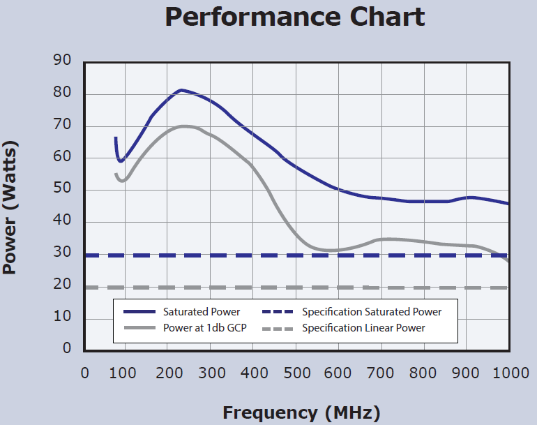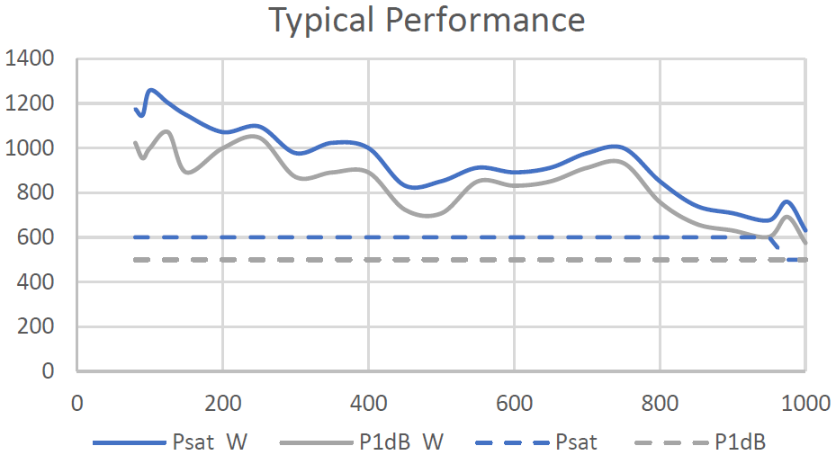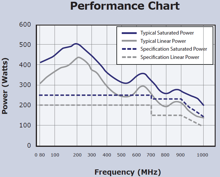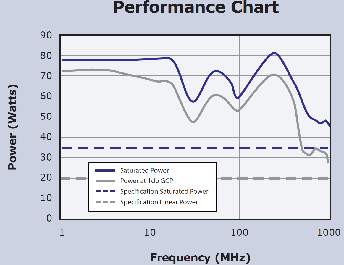 Wideband 80–1000 MHz coverage across the series for stripline/antenna drive and chamber use at VHF/UHF.