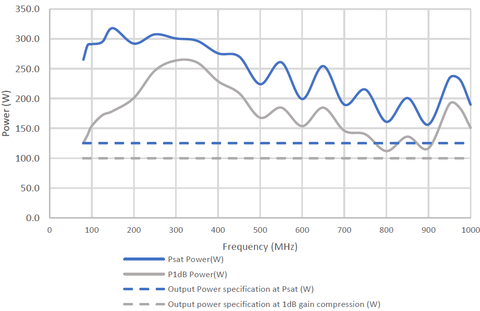 Required linear output (P1dB) at the highest frequency of interest.