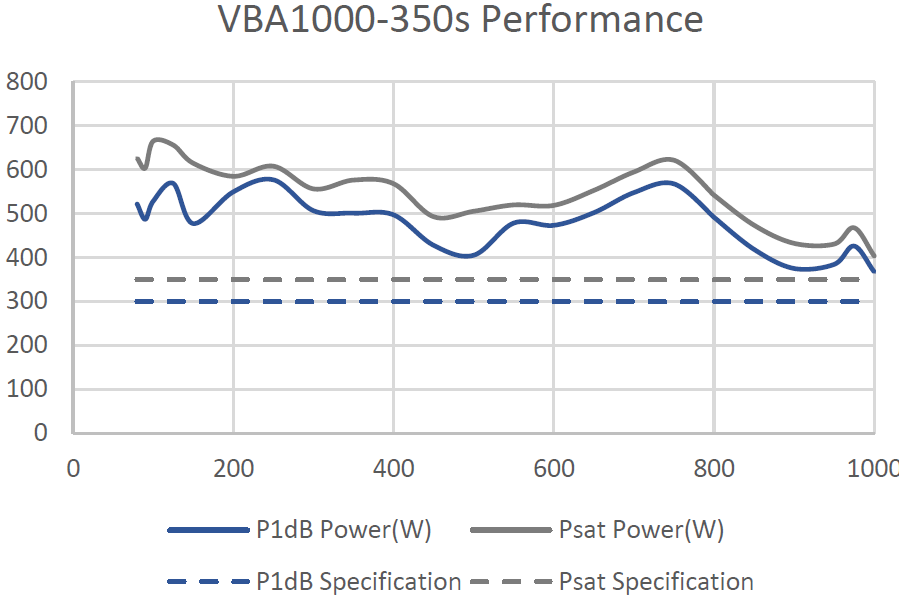 Models: VBA1000-30, -100, -250S, -450S, -600S, -1000s (80–1000 MHz). See datasheets for exact start/stop, gain, and power profiles.