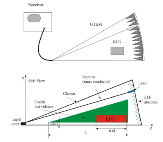The GTEM CELL is a TEM waveguide with an upper-frequency limit extended to the GHz range. It is considered an alternative measurement facility for radiated emission and immunity measurements. It is included in the standard IEC 61000-4-20 “Emission and Immunity Testing in Transverse Electromagnetic (TEM) Waveguides.”
