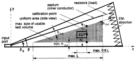 Fig.1 – Diagram of usable test volume in a GTEM cell, longitudinal section