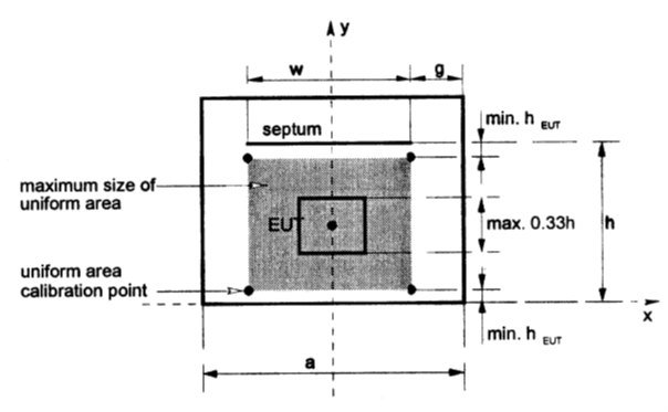 Fig.3 Maximum EUT size and maximum size of the usable test volume in a GTEM cell, cross-section