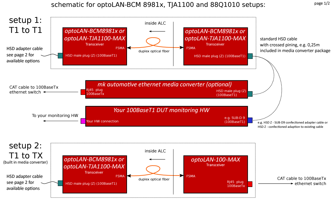 optoLAN 100Base-T1 Max Optical Link for Automotive EthernetOptical link for high speed Ethernet (LAN) signals with up to 100 Mbit/s (100BaseTx) Key Features: