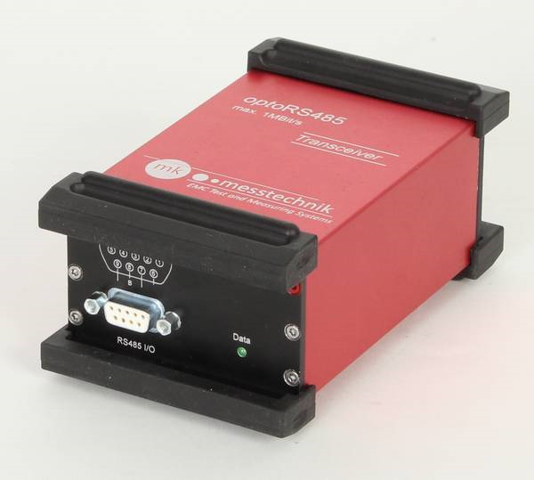 optoRS485, Fiber-optic Link for RS485 signalsThe optoRS485 system can be used for the optical transmission of RS485-signals up to a data rate of 1 Mbit/s. It can be used to transmit RS485-signals over long distances or to handle ground potential problems. With the optical transmission and the shielded case, the system is well equipped for EMI and EME tests. Go to our quick guide for all mk messtechnik fiberoptic links